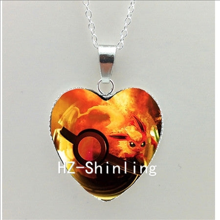 New Pokemon Pokeball Heart Necklace Silver Heart Necklace
