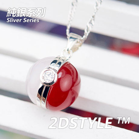 Pokemon GO necklace sprite poke ball Natural Agate 925 silver pendants